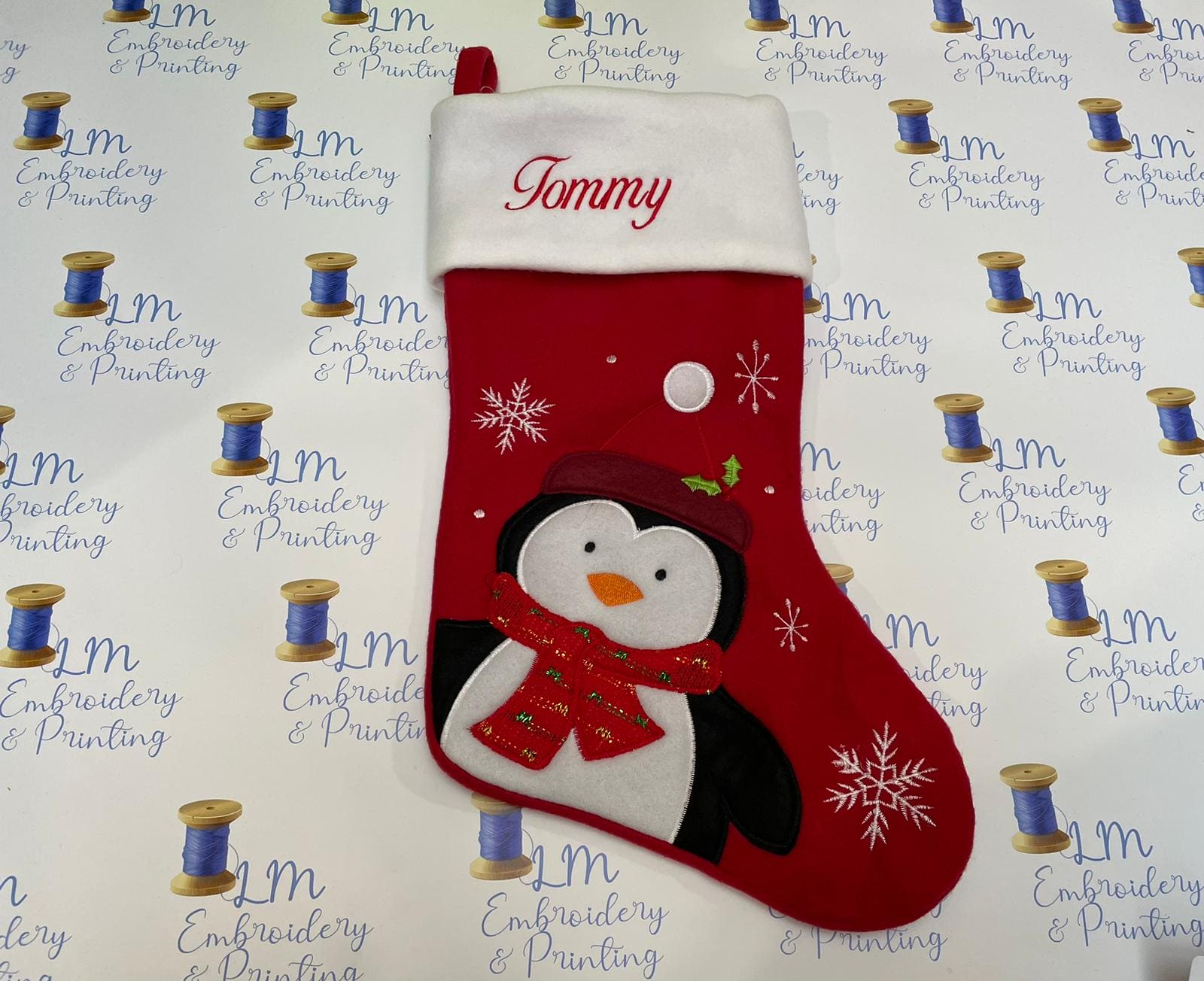 DELUXE PLUSH RED WHITE TOP CUTE PENGIN STOCKING 40CM X 25CM